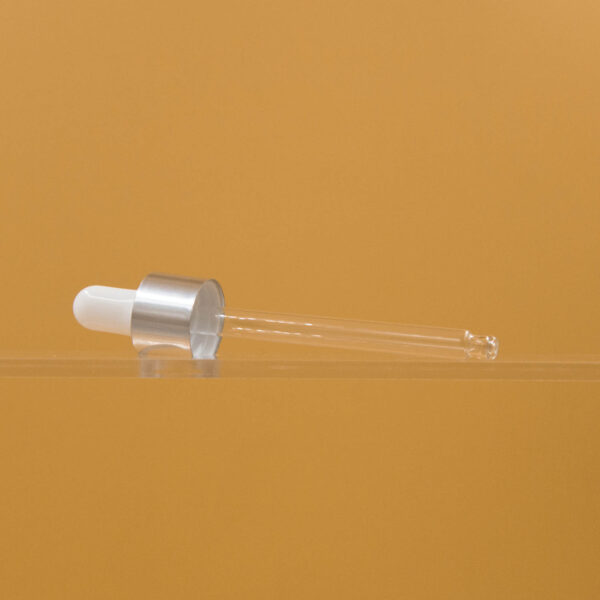 218014/004 Капельница, 18/410, трубка 89 мм, юбка укороченная металл глянец серебро, груша глянец белая
